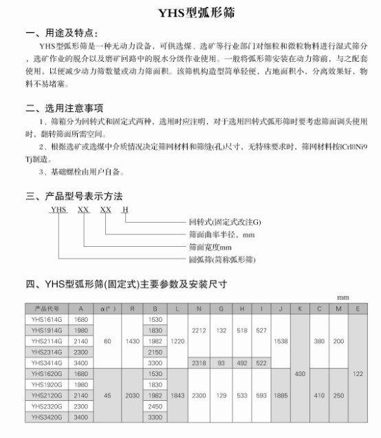 YHS型弧形篩